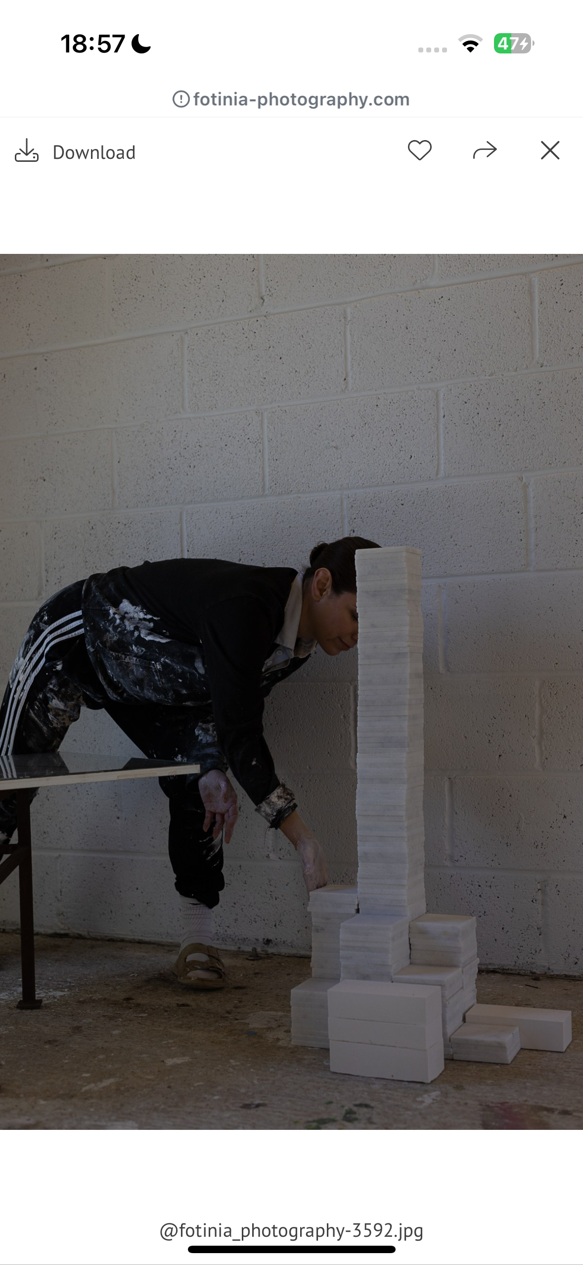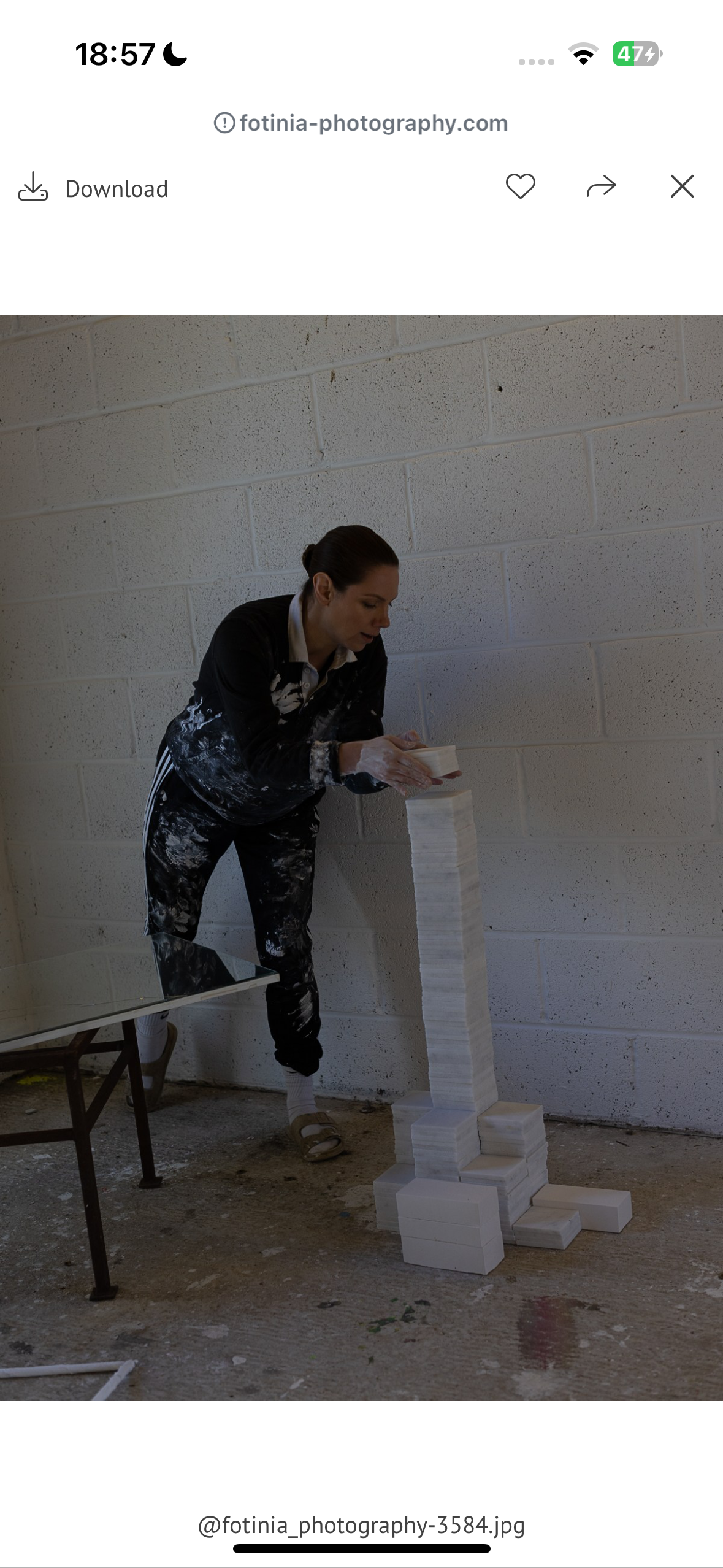 For the making of ‘God’s will’ IMW plays out a performance piece, slowly moving the heavy tiles from the ‘throne’ and stacking them to create an architectural tower, thinking of the tower of babble and how we should all submit to the invisible forces, while using them to create the tower. Each movement is uncomfortable for IMW due to a back injury she acquired in 2021, the fragility of the tower speaking to the fragility of what we take for granted and the fruitless element of human nature as we attempt control on external surroundings. The column is a repeating motif in IMW’s work, calling upon this human need to control perspective and our innate response of awe to the eye being drawn up.