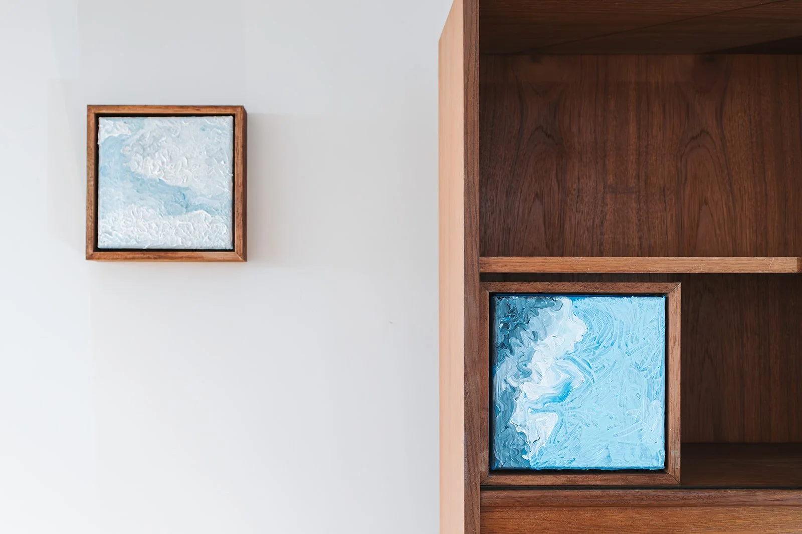 The paintings operate as spatial records rather than depictions. They hold multiple atmospheric conditions at once, tracking shifts that occur across time, material and perception.